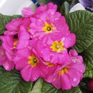 雨粒ドロップとフリルパンジー&プリムラジュリアン♪ 気がつかなかったけれど、凄い吹降り雨だったみたいです〜 小さな雨粒が、キラキラ♪♪