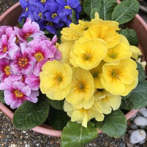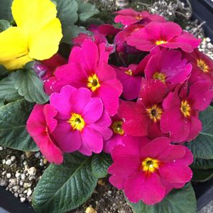 おはようございます😃 紫色の 「プリムラジュリアン」 自分ではあまり選ばない色ですが、とてもいい色だなぁ💜 家のピンク色の「プリムラジュリアン ポミーライト」🩷 蕾がいっぱい🈵 忘れてた😅 外に黄色の「プリムラジュリアン」 もいました💛