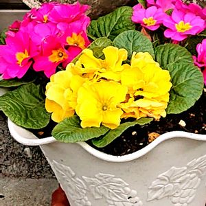 娘たちの病院ついでにカインズ寄ったら 色々あったので引き取ってきました🤣 プリムラ ジュリアン×2 プリムラ ゆきんこ プリムラロザリー カシスオレンジ ハツユキカズラ×2 クレマチス ダッチェスオブエジンバラ(1年苗?) クレマチス ピンクファンタジー(2年苗?) クレマチス以外はクリアランスでした🤩 で!お家の黄色いプリムラが寂しくないように一緒にしてあげました!見た目アレなのは初心者なので許してください🙇♂ …にしてもプリムラは種類が多くてよく分かりませぬ… ロザリーのカシスオレンジなんてネット調べてもロクに出てこないし💦