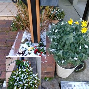 避難できなかったお花達に····· 雪が少し積もりました☃❄ 頑張って咲いてね😂😁✌️
