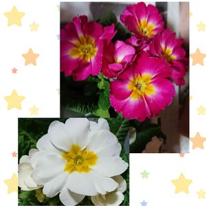バラ咲き(ᴗ͈ˬᴗ͈⸝⸝)❤︎ 黄色のプリムラ ジュリアンと プリンアラモードのプリムラ ジュリアン プリンアラモードって 今はない? どんなスイーツだったっけなぁ (๑˘ ˘๑)*.。