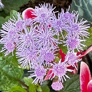 🍀🌻🪴💐🌹🌻🍀 🍀💜アゲラタム💜🍀 アゲラタムが暑さにも負けずに 咲いています 💐アゲラタムの花言葉は(信頼) (安泰) (安楽) (幸せを得る)です、これらの 花言葉は、アゲラタムの花が長期 間咲くことに由来します。 💐アゲラタムはメキシコ~中央アメ リカに分布するキク科カッコウア ザミ属の一年草です 💐花色はブルー、白、ピンク、薄紫 などで、草丈は15㎝~80㎝程に成 長します 💐アゲラタムの花期は5月~11月、 花期になると、茎の頂部に花序を 出し多数の頭花(とうか)を付けます 💐和名はムラサキカッコウアザミ (紫霍香薊)は美しい花を咲かせる ことから広く栽培されていて、世 界中で帰化しています 💐アゲラタムの頭花は直径0.6~2㎝ 程度の大きさで、管状花のみで構 成されています 💐管状花は先が小さく5裂した筒状で 35~70個が密生していて、 花冠か ら長く突出しているのは2裂した雌 しべの花柱です 🍀🌻🪴💐🌹🌻🍀