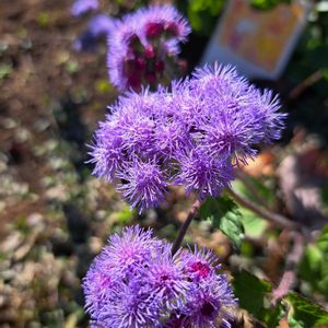 お散歩コースでアゲラタムがたくさん咲いていました。花があまりない中、小さな花がかわいかったです。