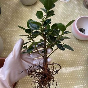 コパンダガジュマルNo.4 6/2 植え替えしました! 小さい子は草みたいだったけど、こっちは樹って感じの根っこでした🌲