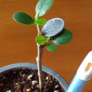 こんにちは。 コパンダガジュマルの挿し木発根苗木をようやく見つけて迷わず購入🙌😜 小さく、厚く光沢のある葉、一目惚れです。👍😂 \(^o^/