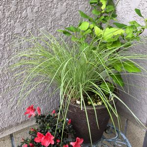 斑入りショタイソウがサラサラと涼しげなので、小さなツツジと合わせてみました。