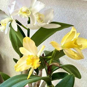 花屋さんで、一瞬スイセンと間違えた😅 ミニカトレアの満天の星•*¨*•.¸¸☆*・゚⭐ 華やか(*´︶`*)♪