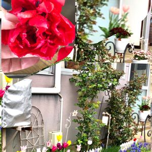 集金中🌀 鉄工所さんの事務所前💐 左上の🌷は八重咲きで🌹のよう❣️ 八重咲きのオシベって!! 真ん中にあるんじゃなく、花びらの間に挟まってたの😳 びっくり💧