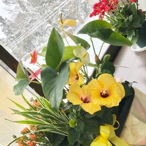集金先の材木屋さんの事務所前😱 ゼラニウムの隣には、30cm以上の直径の鉢に!赤い花を咲かせたカランコエがぁー😭葉っぱも茎も凍みてベチャっとした姿で❄️被ってた🥶 ゲンナリ⤵️