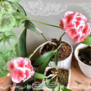 淡いシャボン玉の固まりみたいなゼラニウムの花( 灬˙罒˙灬 ) 下の葉っぱはセッコクかな……昨日の集金咲の薪炭屋さんのお花♡ ゼラニウム好きだなぁ(๑˙꒳˙๑)