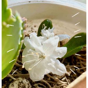集金先のディーラーさんの鉢の中( ᯣωᯣ ) 子宝草の鉢から知らない🌱出て花が咲いたそうなΣ(*゚◇゚*) 羨ましいプレゼントだ( ゚ー゚)ウ ( 。_。)ン