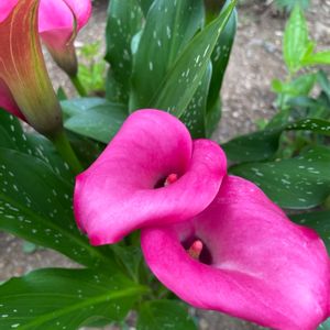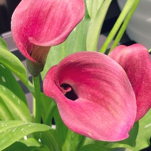 先日投稿したピンクのカラー お花が揃ったようです。今年は5輪咲きました(๑˃ ᴗ˂ )v 一昨年は20輪くらい咲いていたので、花数は大分少ないのですが、その分1輪が大きい感じがします☺️ のびのびおおらかに咲いてくれました🎵 来年はもう少し花数も増えると嬉しいな😌🌸💕