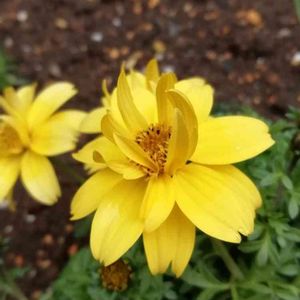 おはようございます😃 今日は晴れ☀️の予報だけど 曇り空⛅ちょっと肌寒い感じ☁️ ビデンス ゴールデンエンパイア** 春にお迎えして、夏場もポツリポツリと咲いていたのだけど 寒くなってきてから 花が一回り大きくなって どんどん咲き始めた🎶😊💕