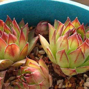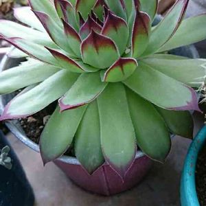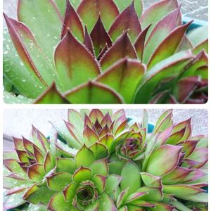 《センペルビウム リンボ》 葉数もぎっしり、赤い縁取りが綺麗です❣️ 横からチビちゃんがこんにちは(*・ω・)ノハロー