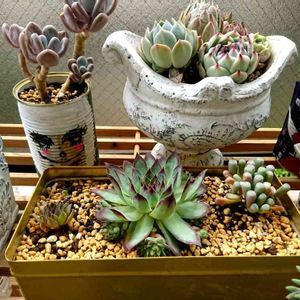 毎日似たような投稿すいません。。。 右上の寄せ植え、勝手に姫系の寄せ集めと思ってるんですが、少しリニューアルしました💠 これからの成長を願って、隙間を作ってます👍