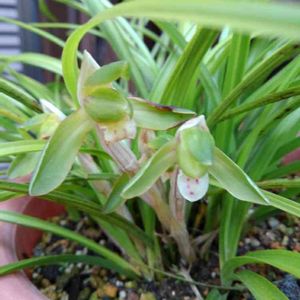 おはようございます😃 小さくて控えめに咲くシンビジウム。 このライムグリーンが好きで、なんとか絶やさないようにと気をつけています❗ 今年も無事に咲いてくれました💕🎵