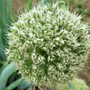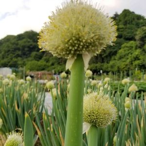 白ネギのネギ坊主君、頭が大きいので重そうね。