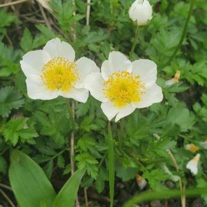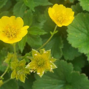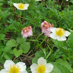 深山大根草 バラ科 6月〜7月 葉は大根草に似て、花はポピーにも似たバラ科の花。岩や石がゴロゴロした場所に多く咲く。根生葉は羽状複葉で、頂小葉が大きく円形、縁は浅く切れ込み鋸歯がある。 茎葉は柄がなく、円形から楕円形縁には鋸歯がある。