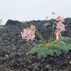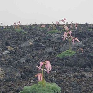 駒草 ケシ科 6月〜8月 秋田駒ヶ岳を代表する花。 蕾が馬の横顔に似ているから駒草。 他の植物が生息できそうにない、砂ガレキの土地にだけ生える。