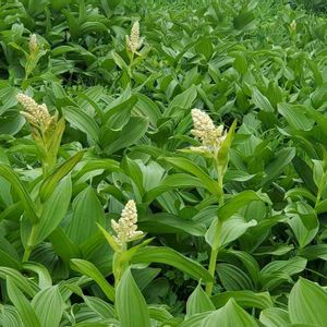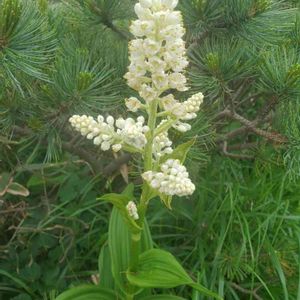 小梅蕙草 ユリ科 6月〜7月 根や茎に毒性の強いアルカロイドを含んでいる。若芽は山菜のオオバキボウシやノカンゾウの若芽に似ており、誤食による食中毒が毎年のように発生。 名前の由来は、花が梅に似ており、葉が蕙蘭に似ているため。