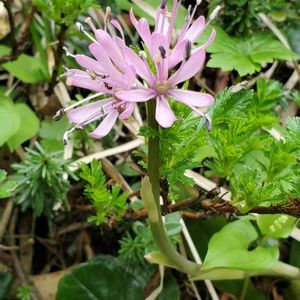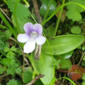 虫取菫 タヌキモ科 6月〜7月 亜高山帯〜高山帯の湿原に生える食虫植物。舌に似た内巻き状の葉で虫を捕らえる。葉の表面に密生した腺毛があり、腺毛から消化粘液を出す。