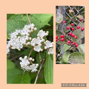 時期はずれ、ガマズミの花🌼 近くには色づき始めた実もありました😅