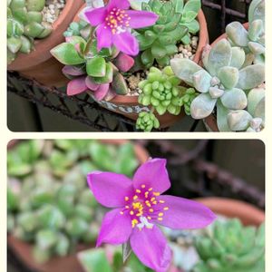 小さな鉢に寄せ植えしてる桜吹雪さんのお花が咲きましたꕀꕤ*。゚🩷夕方には萎んでしまったので、📸しておいて良かった🎶 お花が見れたらラッキーらしいので1つでも嬉しい〜💕🎶 親株の方も咲いて欲しいなあꕀꕤ*。゚