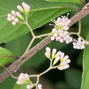 小さな小さなピンクのお花🩷 紫のもっと小さな実が楽しみです😊♡