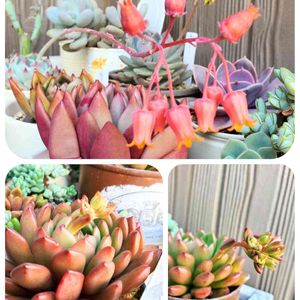 ピンクルルビーさん 季節ごとの色の移り変わりが 多肉の中で一番好き🥰 アルバローズさんに 初めて花芽が👀