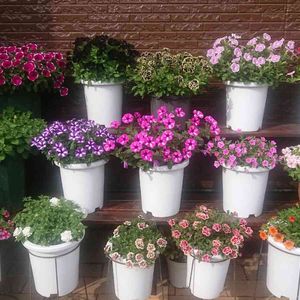 💠ペチュニア達💠 まだ咲いてないのもあります😅 我が家のペチュニア全種類 風車の前→PW カリブラコア レモンスライス 一番上の段左から ◯SUNTORY サフィニアアートあずきフラッペ ◯万葉の美シリーズ 黒之瀬戸 ◯エム.アンド.ビー.フローラ 花衣 黒真珠 ◯SUNTORY いちごシェイク ◯jardin フィオナ フラッシュ 2段目 左から ◯エム.アンド.ビー.フローラ花衣 紅水晶 ◯PW あふれ咲きペチュニア ブルーベリージャム ◯PW あふれ咲きペチュニア ラズベリージャム ◯PW ダブルカリブラコア ダブルピンクリップル ◯SUNTORY サフィニアアート ももいろハート 一番下の段 左から ◯PWスーパーベル ストロベリースライス ◯SUNTORY サフィニアフリル ホワイト ◯SUNTORY ミリオンベル プチホイップ ラムレーズン ◯SUNTORY ミリオンベル プチホイップ ストロベリー ◯SUNTORY ミリオンベル オレンジ ◯PW スーパーベル ダブルミルクレープ