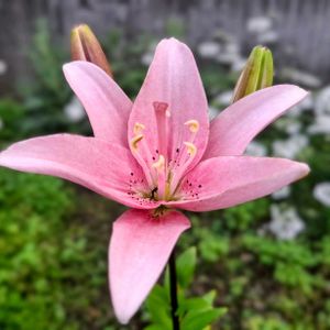 カサブランカ 今朝 咲きました🎵 ☂️あがって 元気そう😊 雄しべの先の葯 美しい✨ 梅雨の時期に咲く 百合だけど ☂️は 似合わないなぁ~🐼