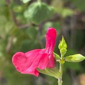 チェリーセージCherry sage、Baby sage 陽射しをたくさん浴びて真っ赤に* シソ科 分枝した茎の上部に花序を出し、径2~3㎝程度の唇形花を数輪、穂状に咲かせる。唇形花(シンケイカ)とはシソ科やゴマノハグサ科の植物の多くに見られる花の形で、筒状になった花の先端が上下に分かれ、唇のような形になったもの。 🏷️真っ赤な火曜日