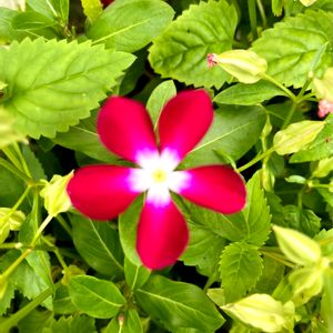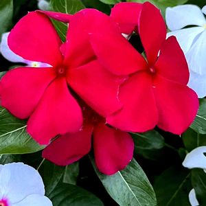 赤い、この子が、バッタに負けず 咲いてます♪😊 今迄、ピンク 白 薄紫を 見て頂きました。 赤は、インパクトが、有りますねー😊 もう少し、実際は、きれいです😊 この子のように、元気で、 頑張ろう😍