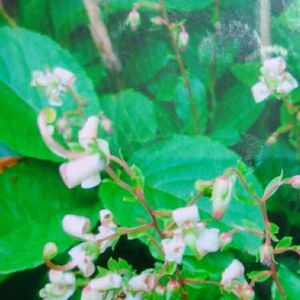 鳥海山 深山穂躑躅 ツツジ科ホツツジ属 7月〜8月 亜高山の林縁や高山の岩場などに自生する。葉は枝に互生し、葉の形は倒卵形で長さ1-5cm、先端はまるく、縁は全縁。 枝先に総状にまばらに花序をだす。花弁の色はやや赤みを帯びた緑白色で、3枚が反り返って丸まる。雌しべが弓状に象の鼻のように曲がるのが特徴。ホツツジ属のホツツジは雌しべは、長くほぼまっすぐに伸びる。