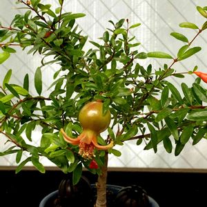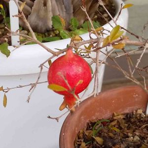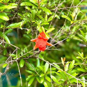 🌿姫ザクロ🌿 夏に全部葉が落ちて枯れたかと思ってたら… この時期に咲いてくれました。