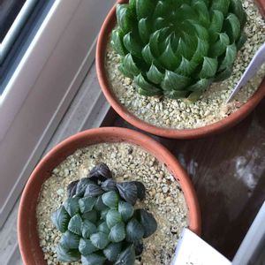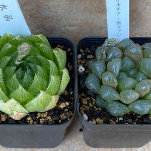 ずっと気になってたハオさんを見つけたのでお迎えしました! 画像左のエメラルドLEDです! 薄い葉先の透明感がガラスみたいに綺麗です✨ よく似ている櫻水晶(画像右)は数年育ててるけどあんまりご機嫌がとれなくていじけ気味なんです… 今年は買ったときから変えてなかった培養土が良くない気がするので赤玉土主体に変えてみるつもりです。 立派なエメラルドLEDを見てたら櫻水晶も立派にしてあげたくなったのでした。