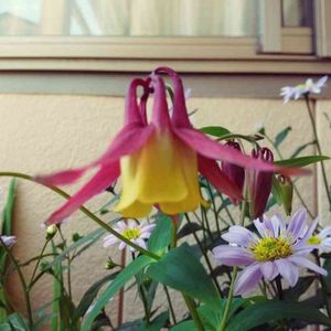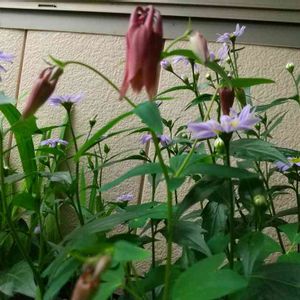 ☘️日陰の花💮 一昨年に友人から都忘れをいただいた中に、紛れ込んでいた❔🌺 葉っぱからオダマキかな?😀