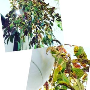 エスキナンサス・マルモラタス💚 葉の模様がとても素敵ですよね✨ シワシワのマルモラタスさんを購入して大分元気になったとは思うのですが、葉の裏の赤紫の模様が全くありません😿栄養が足りないのでしょうか❓️日光不足❓️etc... アドバイス等々お待ちしております☺️