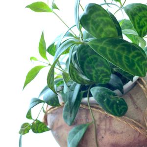 エスキナンサス・マルモラタス🌿 葉表はグリーン、葉裏は個性的な黒っぽい柄がエキゾチックでカッコイイ✨ やっとお迎えです!! この色合いお気に入りで、葉裏が見たくて光に透かしては眺めています😊 わしゃわしゃに伸ばしてハンギングにしたいーーー🌿🌿 今日は今年初の夏日の予報ですって、それだけでもウキウキ💕 じっとはしていられないぞーーー、まずは窓開けてーーーーっと!!