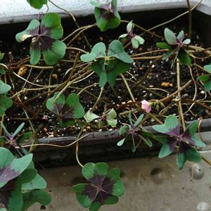最近、綺麗な葉っぱのクローバーが気に入ってます ダイソーの球根ラッキークローバー❣️ 名前に惹かれて植えてみました 四つ葉らしいです。 何だか芽が綺麗だけど葉っぱは緑色かな❓