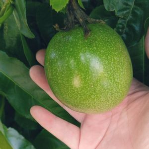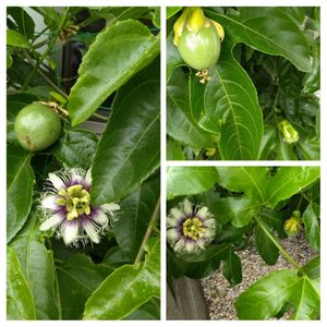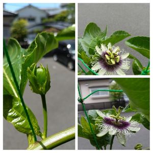 こんにちは🍀 ☔雨も降ったり止んだり💦忙しい……お天気 ファッションフルーツ💕さんに実・実・実 ひい〜ふう~みいー💖 3個✨ 👀❣️❣️❣️ 成ってる〜🍀🍀 😭💕 ポトポト💦花が落ちて お友達は去年全滅で1個も実を付ける事は無かったそうです😅 教訓…受粉するべし ここ1週間😁 刷毛を持ってトライ✨ おぉーー実が〜💖 😭😭😭 ご予約が有るけど その個数まで成ってくださるか😅 🌼花が咲いた分 受粉頑張ります😤