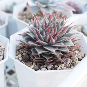 昨日はアガボ系の植え替えをしました 夏も冬も元気なアガボ 冬の方が得意で氷点下でもなんのそのらしいですよ でも今時期くらいからがやっぱり綺麗ですね ほかのエケに比べ根が短いのがアガボの特徴かな 写真はルビーノバ 植え替えに備えて水切っていたので色付きキュッとしてる姿が可愛くて