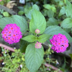 ↖️のショッキングピンク色に咲いていたのでパシャ📱しました ランタナは七変化のお花と聞いたことがありますが本当でした。感動です まだまだ蕾もいっぱい。 可愛すぎるぅ😊💓