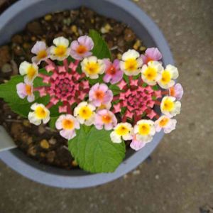 おはようございます🎶 20年位鉢植えで育てたランタナを株分けして植え替えたら綺麗な花が咲き始めました🎶 嬉しいです🤍🤗