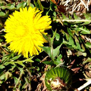 たんぽぽ まだ土に貼り付いて 咲いています。 でも冬にちらほらと見られた花と違い、黄色が鮮やか、いきいきとしています。 2023.3.15.午前撮影
