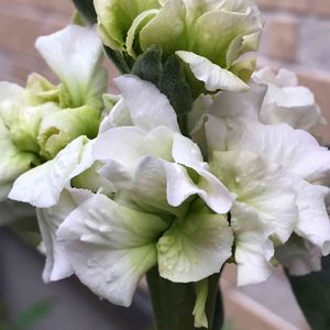 こんにちは😃 午後から曇ってきました☁️ 種から育てた切り花用のストック 8本プランターに植えて1本は蕾がつく前に誤って折ってしまい、7本育ったのですが なんと全部「白」 一部うっすらとピンクの縁取り?の株もあるけど まぁ揃いも揃って同じ色とは😫 でもね😊 お仏壇にお供えしたらすんごくいい匂い 花粉症になってから嗅覚に異常をきたしている私でもよくわかるくらい強い香りです