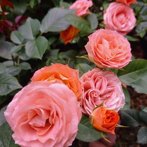 🌹切り花品種(今井ナーセリー) 白いアロンジェを買ったつもりが赤い花が咲きました。花弁がしっかりしていてよく咲くスプレーバラ。後ろ側にスポットを当ててみました笑