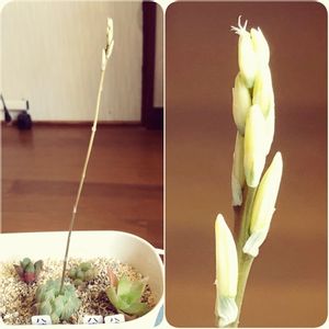 今日は12日、🏷十二の巻 🏷十二の日 今朝は雨だから、昨日の写真で。 花がまた咲きました。 2枚目はピリフェラ錦の花。 同じハオルチアだから、交配出来るのかな? でも子供の想像がつかないから、止めときます😅💦💦