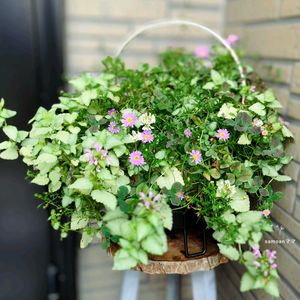 今日は先日植え付けたハンギングバスケット😊 手前の黄色は這い性ビオラ😃 初めて育てるけど、上手く垂れてくれるといいな。💕 シルバーリーフはおうちの庭と相性のいい ラミウムスターリングシルバー。 いい味出してくれます🎶