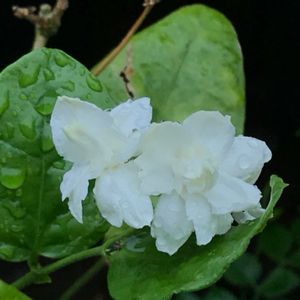 おはようございます😃 朝から中途半端な雨、これだと水やり一回は必要かな☂️🚿 ジャスミン茉莉花(マツリカ)咲きました。 これをジャスミンティーに使っているところが多いらしいです。バラ咲きに近いですね。